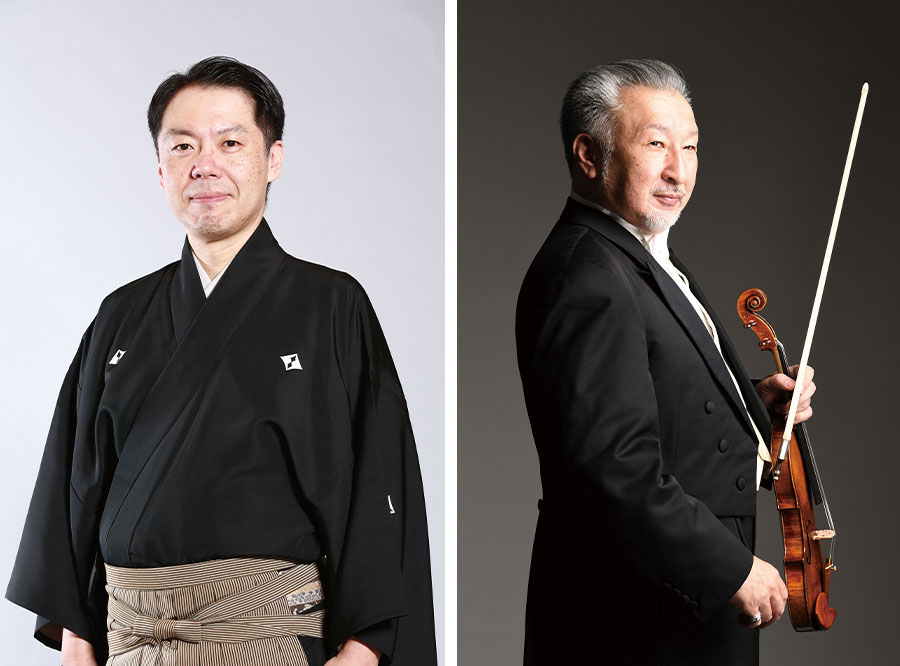 長唄三味線の今藤長龍郎をはじめ、尺八や三絃、箏などの名手たちと共演するのは、北九州市出身の二人のクラシック音楽家。NHK交響楽団特別コンサートマスターをこの3月までつとめたヴァイオリンの篠崎史紀と、全日本学生音楽コンクール北九州大会の中学校の部で優勝したピアノの鈴木れあである。東西の伝統音楽の共鳴を楽しもう。
