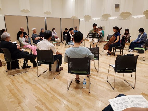 「寺子屋」の立ち上げは2018年、村上がケルン放送響ソロヴィオリストだった時期であり、彼がもっているものを伝える場を作りたい、ということから、関西は神戸で開催することになった。村上のアイディアは、いわゆる「マスタークラス」とはまったく異なるものだった。