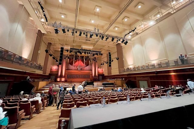 1日の空き日をおいて、セミファイナルは、モーツァルトのピアノ協奏曲と40分のリサイタル。リサイタルプログラムは2つを提出し、29時間前(丸一日と5時間前…つまり前日の朝または昼までにわかるという感じですね)に知らされるというルールです。 この先もまだまだハード。みなさんがんばってほしい!