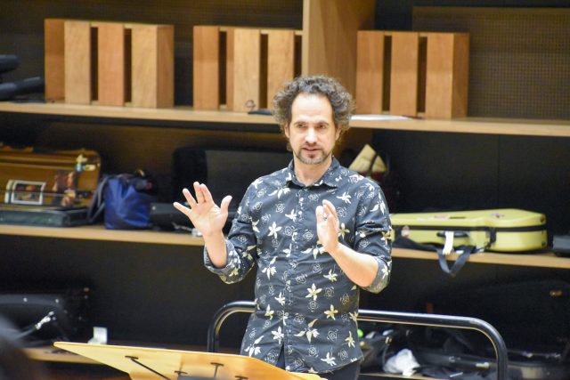 見学した2日目のリハーサルでは、メンデルスゾーン以外の練習が行われた。まずは前半にプログラミングされたマーラーの交響曲第10番 嬰ヘ長調の「アダージョ」。よく知られているように、この曲はマーラー自身がオーケストラのスコアまでしっかりと書き上げたのは第1楽章のアダージョのみなので、現在のように補筆完成版が広く認められるまでは「アダージョ」だけを演奏するのが当たり前だった。プログラミングされた理由は、ハースの《コンチェルト・グロッソ第1番》では「ファ#(嬰ヘ)」が主音のような役割を果たすので、“嬰ヘ”長調の「アダージョ」との繋がりを狙っているのだという。