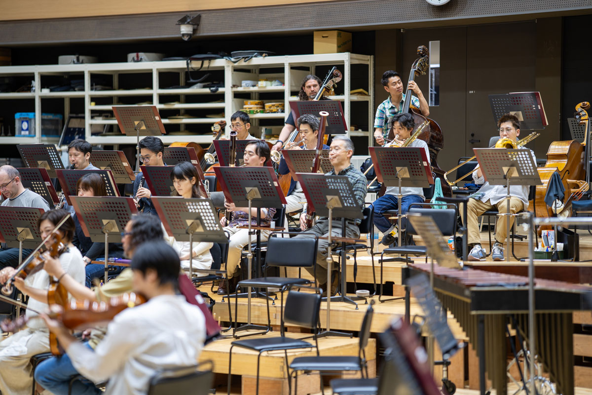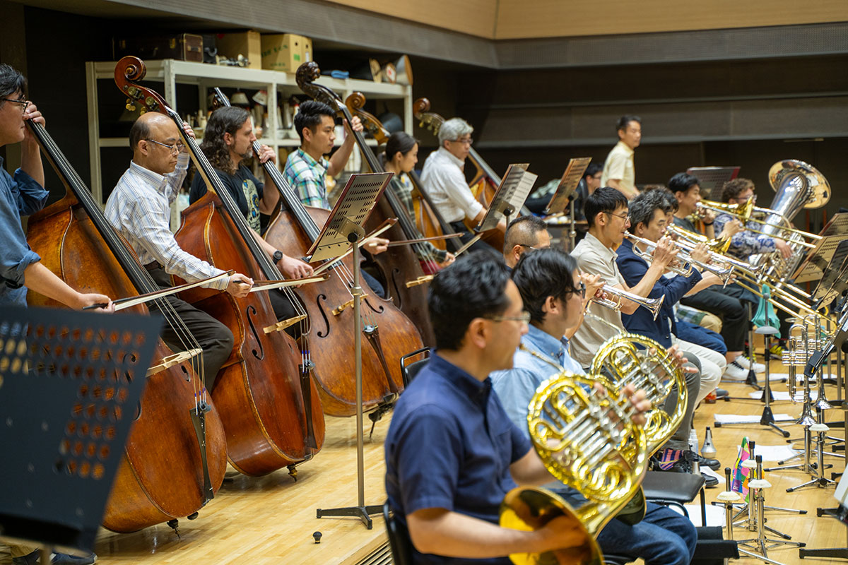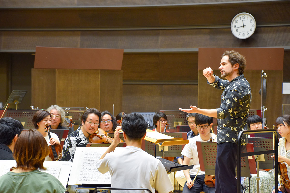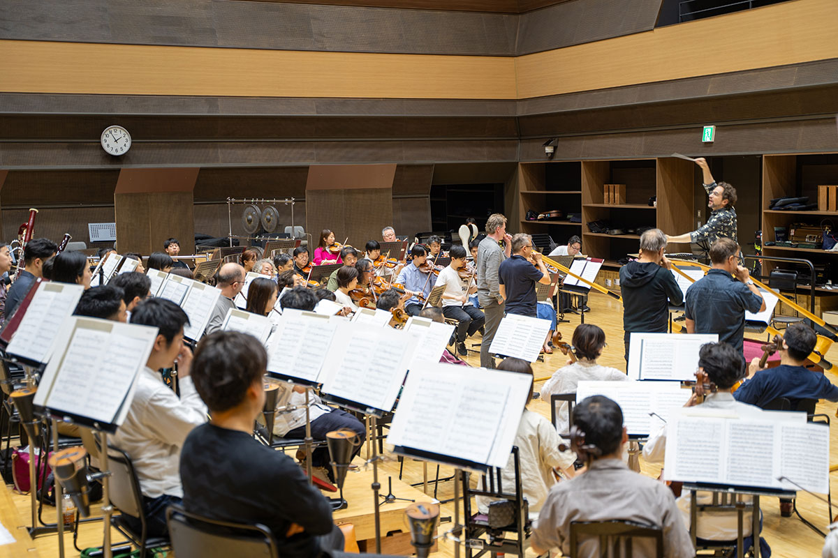 ホルンロー・モダン・アルプホルン・カルテットと共に演奏を担う読売日本交響楽団のリハーサルを5月20日に取材した。読響は2018年に前音楽監督であるカンブルランの指揮で、ハースの管弦楽曲《静物》(2003/※カンブルランが世界初演)を取り上げているとはいえ、半音よりも狭い微分音を用いた繊細な響きを特徴とするハース作品は常に著しく演奏が困難。作曲者から厚い信頼を得ている指揮者ジョナサン・ストックハンマーは、どのように読響を導いていくのだろうか?