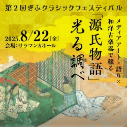 古楽先進地かつ現代アートも盛んなオランダで豊かな経験を積んだフォルテピアノ&チェンバロ奏者の小川加恵が、2021年から地元の岐阜でエグゼクティブ・プロデューサーを務める「ぎふクラシックフェスティバル」。今夏は、彼女を含む古楽器奏6人が琵琶弾き語りの中沢龍心、怪談師の満茶乃と共に『源氏物語』の六条御息所に関わるエピソードを扱う異色パフォーマンスを展開。時空を超えた異界空間を21世紀日本となだらかに繋ぐ協力者として、デジタル映像表現を活かしたステージ演出で知られる映像クリエイター花房伸行を迎える。