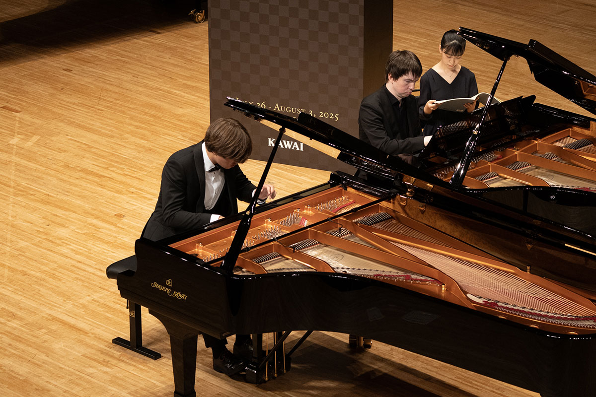 この日は、6人のファイナリストが、伴奏者であるアンドレイ・ピサレフ、またはアレクセイ・メルニコフとの2台ピアノでそれぞれ協奏曲の課題に臨んだ。コンテスタントのために、2015年製と2025年製のShigeru Kawai SK-EX 2台が用意され、各々がセレクトした楽器で、その豊かなサウンドを存分に聴かせた。