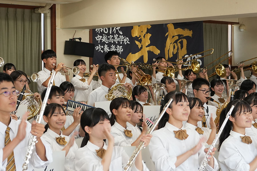 7月31日、中越高校は県大会に出場した。結果は金賞。代表校のひとつにも選ばれ、今年も西関東大会への出場が決まった。