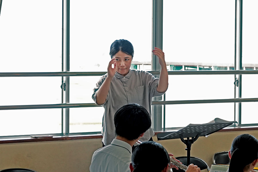困ったときに頼りになるのが、昨年からコーチをしている須藤壮(たけし)先生の存在だ。須藤先生は中越高校で部長だっただけでなく、卒業後に名門の東海大学吹奏楽研究会でも主将を務め、全日本吹奏楽コンクール・大学の部で金賞も受賞している。全国の舞台での貴重な経験を部に還元しつつ、リーダーにしかわからない悩みにも的確に応えてくれるという。