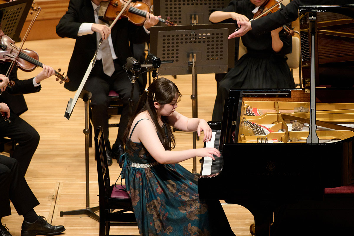 1次予選〜3次予選、セミファイナルを経て、この日のステージに立ったのは4名。チケットが完売になるなど、例年にも増して多くの聴衆が見つめるなか、大井剛史指揮の東京シティ・フィルとの共演で協奏曲を披露した。4人が大舞台でそれぞれ渾身のパフォーマンスで持ち味を出し切った姿が印象的だった。見事グランプリに輝いた稲沢は、独特の緊張感に満ちたベートーヴェンの協奏曲第3番で、楽章ごとのコントラストを明確に描き分け、緩徐楽章ではセミファイナルのシューベルトのソナタでも見せた歌心あふれる繊細な情感を聴かせた。オーケストラと初共演であること感じさせない完成度の高さが審査結果と聴衆賞の受賞につながった。