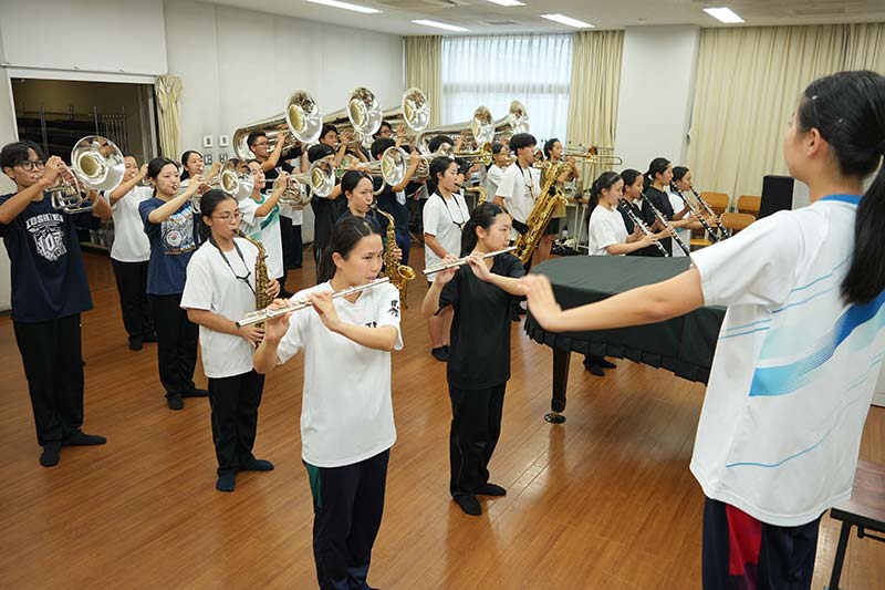 彩名がそう語ったとおり、マーチングバンド部にとって野球応援は大事な活動のひとつだ。迫力ある演奏は甲子園に出るたびに注目の的。特に、千葉ロッテの応援と湘南乃風の楽曲をつなげた《戦闘開始》は他校にも真似をされるほどの有名曲となっている。