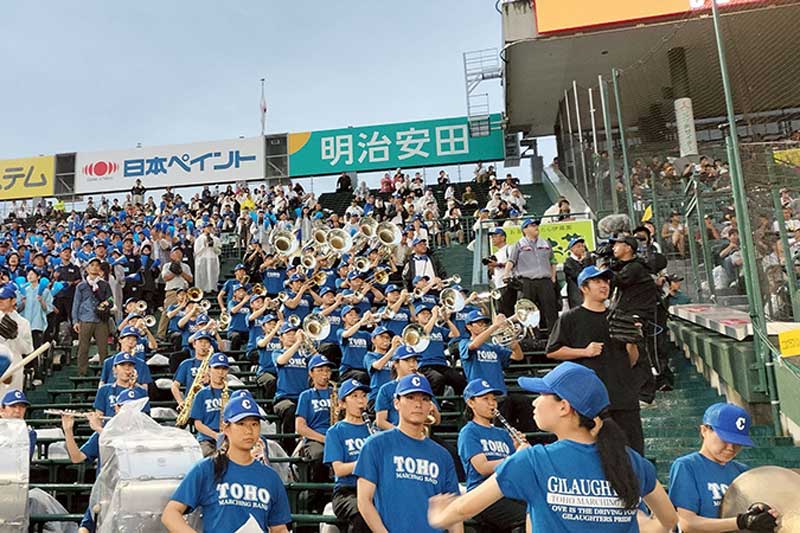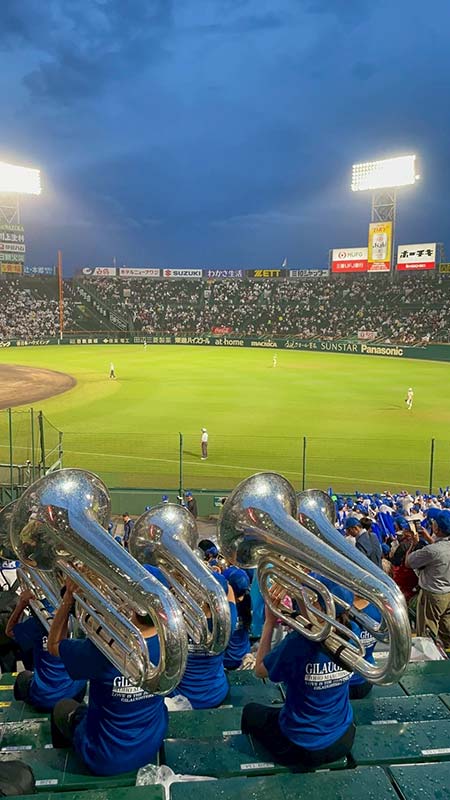 「マーチングバンド部の活動としては、依頼演奏やマーチングコンテストなどと並んで、野球応援もつねに年間計画に組みこんでいます。高校野球は、単なる野球部の試合を超えて大きな文化を形成しています。我々の応援もその一翼を担っているのはとても嬉しく、誇らしいことです」