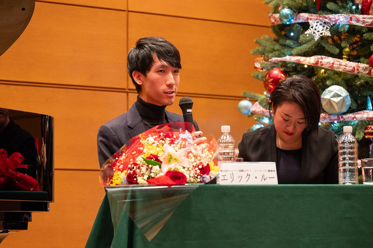 会見では、ショパンコンクールを終えての心境、また現時点でのショパンに対する想いを語った。また質問の前には、ショパン ワルツ第7番 嬰ハ短調 op.64、ワルツ第5番 変イ長調 op.42の演奏も披露された。