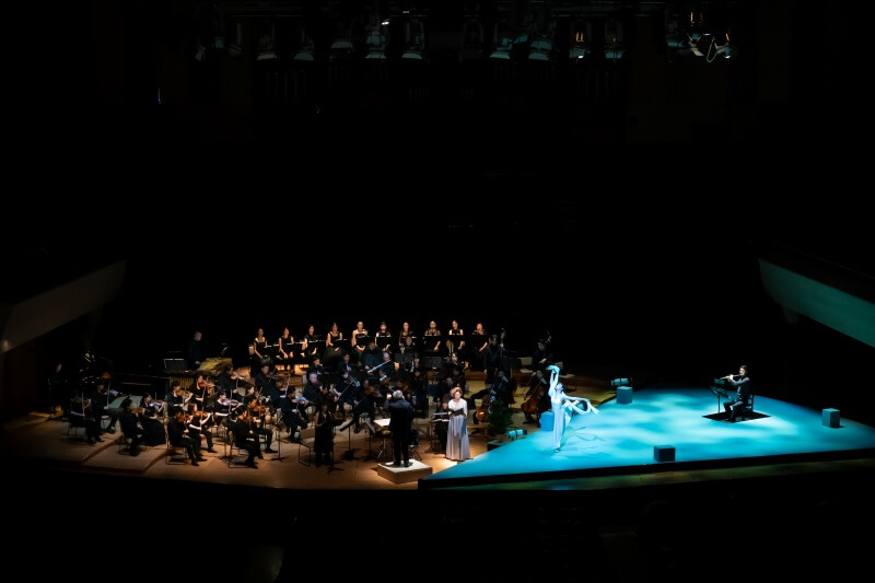 記念年の作曲家としては生誕100年のピエール・ブーレーズ東京シンフォニエッタ)と芥川也寸志の作品による個展(新交響楽団オーケストラ・トリプティーク)があったほか、日本で90歳を迎えたミニマル音楽の作曲家テリー・ライリーを祝う演奏会が印象深い。1つは「テリー・ライリー バシェ音響彫刻コンサート」と題された京都市立芸術大学の公演で、ライリー自ら学生による合唱と共演し、自然倍音で共鳴しながら移ろっていく新作を初演した。ホールの後ろに置かれたバシェの音響彫刻が声と交感する空間は大自然の懐に佇んでいる感覚をもたらす。神奈川県立音楽堂で日本初演となったライリーの「サン・リングス」はNASAが提供する、録音された宇宙空間のサウンドと弦楽四重奏、合唱が謳う壮麗な宇宙讃歌であり、そこには平和を希求する願いが滲んでいた。