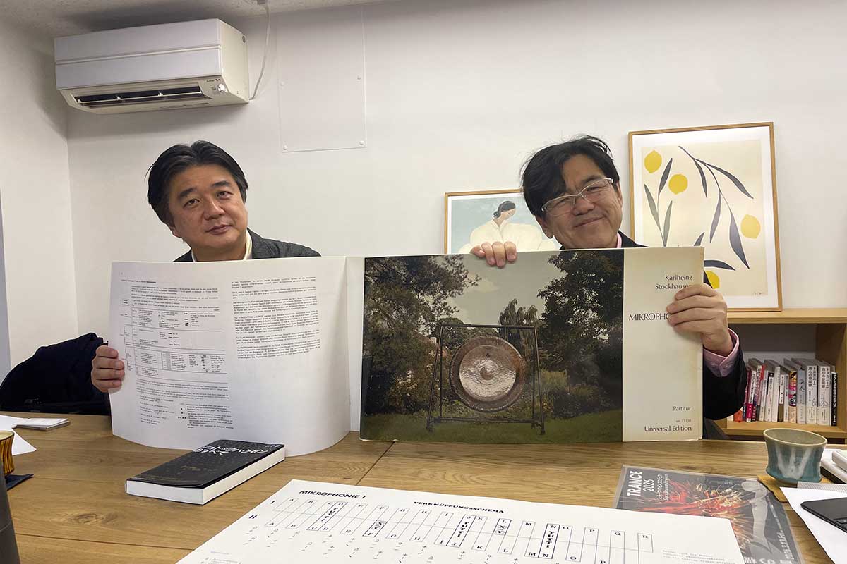 ピアニストで日本を代表する現代音楽のスペシャリスト・中川賢一さんと、バリトン歌手でシュトックハウゼン研究の第一人者である松平敬さんが編集部にいらっしゃいました。