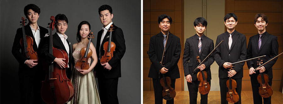 もう一組は、東京藝術大学音楽学部附属音楽高校の同級生により2016年に結成されたViolin Quartette TAKEYUMI。メンバーは読響、ミュンヘン・フィルのアカデミー、パリ音楽院などで研鑽を積み、各地で多様な活動を重ねてきた。「TAKEYUMI」は、4人の名前の頭文字から取ったもので、弓道で用いられる竹弓、また、take(弓使い、弓を手に取る)という意味合いも含まれている。25年12月の公演では、卓越した技術と高い集中力を発揮し、居合わせた聴衆一人ひとりが音楽の喜びを心から感じる演奏が高く評価された。
