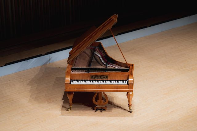 一方、ピアノは小倉が所有するヨハン・バプティスト・シュトライヒャー製作のピアノ(1845年製)。ヨハンの母ナネッテは、ベートーヴェンと交流があったことで知られ、シュトライヒャー一族は時代を代表するメーカーの一つだった。音域は6オクターヴ半余り。ウィーン式アクションをもつ平行弦の楽器は、発音が明瞭で細やかな音のニュアンスが味わい深い。