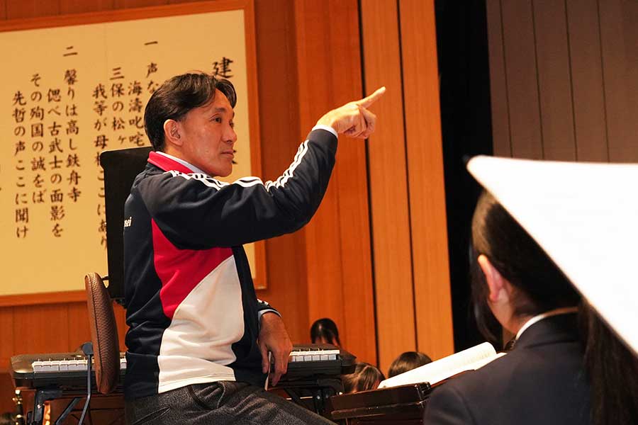 「吹奏楽コンクールとマーチングコンテストでは全国大会金賞を目標にする。出るからにはいちばん上を目指す。ただ、大事なのはその過程で部員たちが人間的に大きく成長することだ」