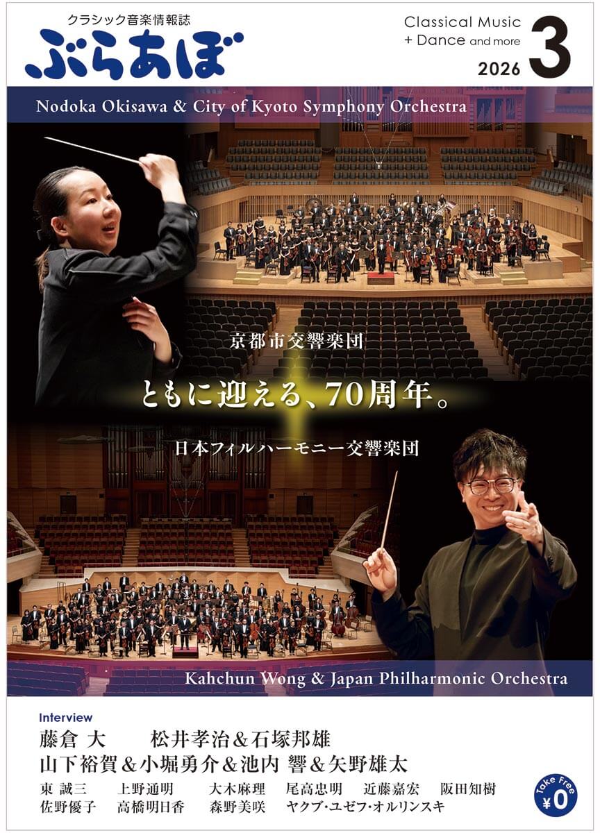 2026年、ともに創立70周年の節目を迎える両楽団。世界を股にかけ活躍する若き指揮者、沖澤のどか(京響)とカーチュン・ウォン(日本フィル)をシェフに迎え快進撃を続けているという共通項を持つ。沖澤によるこだわりの“プロコフィエフ・ツィクルス”、カーチュンが得意とするマーラーの「千人の交響曲」を目玉とし、記念年にふさわしい意欲的なラインナップを展開。さらに、京都市内の歴史文化施設で行うアウトリーチ事業「京(みやこ)の音楽会」、楽団員自らプロデュースする「日本フィル室内楽シリーズ」の東京定期など、楽団の魅力をより広く発信するための新たな取り組みも。東西の“都”でそれぞれ伝統を培ってきた両楽団が切り拓く、日本のオーケストラの未来に期待したい。