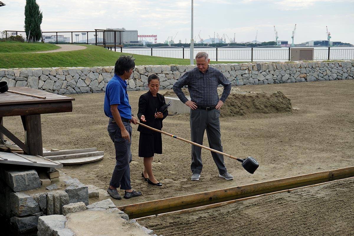 復元された塩田を視察するドラジェン・フラスティッチ大使