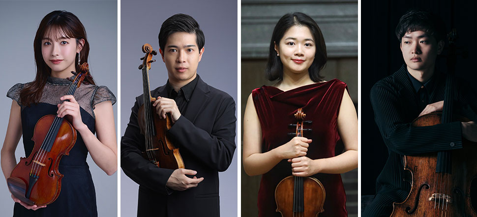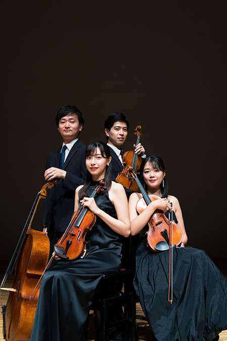 メンバーは、「東京」と「日本」の両音楽コンクールで優勝、2024年にハチャトゥリアン国際コンクール第3位・特別賞を受賞、ソリストとして活躍する荒井里桜が第1ヴァイオリンを務める。第2ヴァイオリンは読売日本交響楽団首席第2ヴァイオリン奏者で、作曲・編曲でも活躍するなど多才を発揮する石原悠企。ヴィオラはヒンデミット国際コンクール優勝、東京国際ヴィオラコンクール第2位、2024年からバイエルン放送交響楽団第1ソロ奏者を務める(同年来日公演での鮮烈な演奏姿も話題になった)湯浅江美子。チェロはやはり「日本」と「東京」両音楽コンクールを制覇、昨年プラハの春国際コンクールでアジア人初の優勝を果たした水野優也。全員が優れたソリストであり、アンサンブルも経験豊富な4人だ。