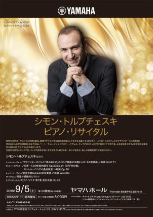 世界の名門オーケストラと共演を重ね、故郷マケドニア初の国家芸術家としてその名を轟かせるピアニスト、シモン・トルプチェスキがヤマハホールに初登場!