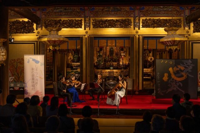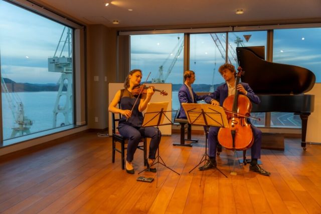 「アカデミー」と連動する音楽祭「しまなみ音楽休暇村」はコロナ禍ただ中の2020年、燎さんの手によって立ち上げられました。今年は5月2日から10日にかけて計4公演を開催。「アカデミー」の受講生・講師が出演する修了演奏会のほか、ライトアップされた造船所のクレーンを背景に、名手たちの室内楽とワインを楽しめるサロン・コンサートや、オーヴェルニュ管の名チェリストを市内の古刹・浄泉寺に招いて行う演奏会など、特色豊かなプログラムが展開されます。