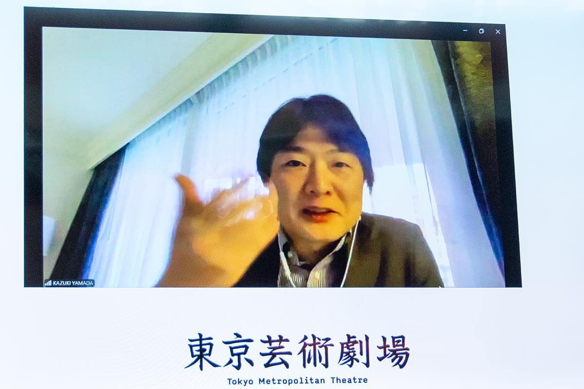 そして、ふたりの違いがまた面白く。今日もちゃんと喋る内容を準備していらっしゃる岡田さんと、全く準備していない私、このコントラストが良い。そして、これまで芸術監督をされてきた野田秀樹さんとも、実は共通項がある。『野田、岡田、山田』と全員に『田』が入っている。そして『秀樹、利規、和樹』と全員『き』で終わる。この韻を踏んでいる3人の体制。野田さんがされてきた功績が大きいと思いますのでうまく引き継ぎたい。大変な仕事量ですけども、その分とてもエキサイティングで、すでに楽しい時を過ごさせていただいています」