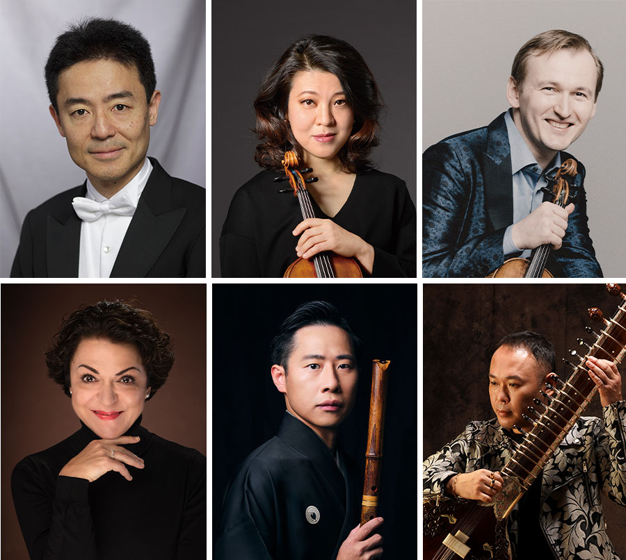 出演者は、びわ湖ホール芸術監督の阪哲朗沖澤のどかが指揮する京都市交響楽団(京響)、日本を代表するヴァイオリニスト 竹澤恭子、チャイコフスキー国際コンクール入賞のニキータ・ボリソグレブスキー、ウィーンで活躍するピアニスト ヤスミンカ・スタンチュール、邦楽界注目の中堅尺八奏者の長谷川将山、インドの民族楽器シタールの現代屈指の演奏家 石濱匡雄など、各ジャンルのトップ奏者が顔を揃えています。