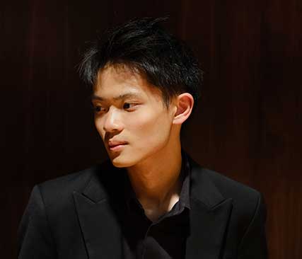 2001年生。現在、米オハイオ州オバーリン音楽院にてダン・タイ・ソンに師事。クリーヴランド管弦楽団、国立台湾交響楽団などと共演。リュブリャナ・ピアノコンクール第1位(2023)、リーズ国際ピアノコンクール第4位(2024)。前回に続く出場。