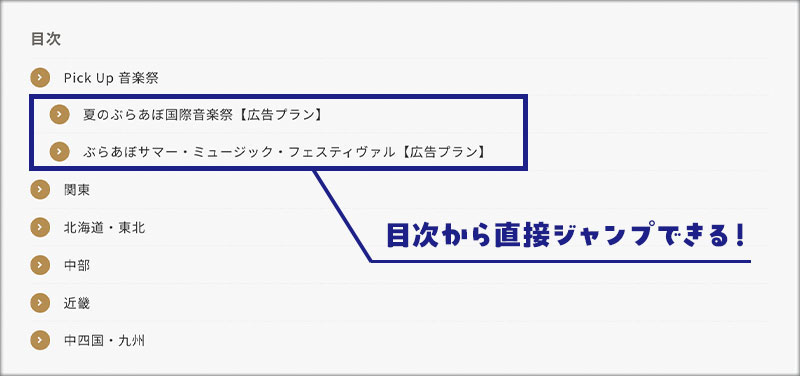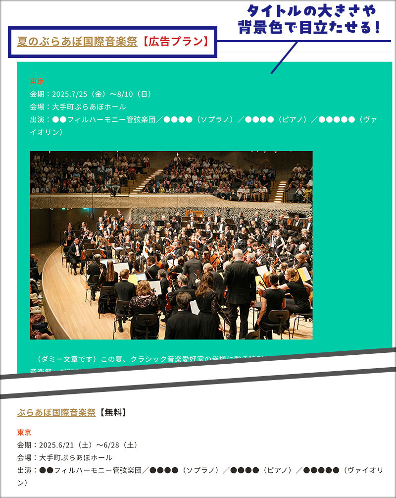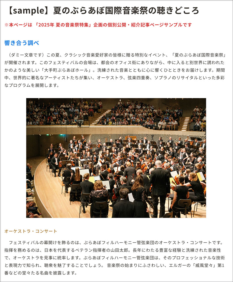 音楽祭をまとめた特集ページ内で、公演情報を目立たせ読者の注目をゲット!